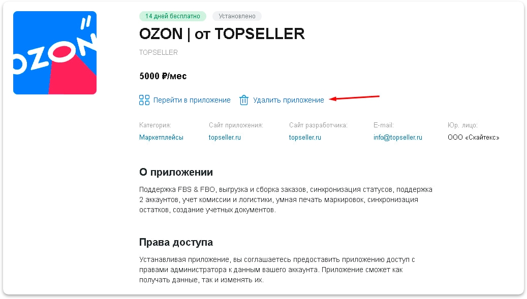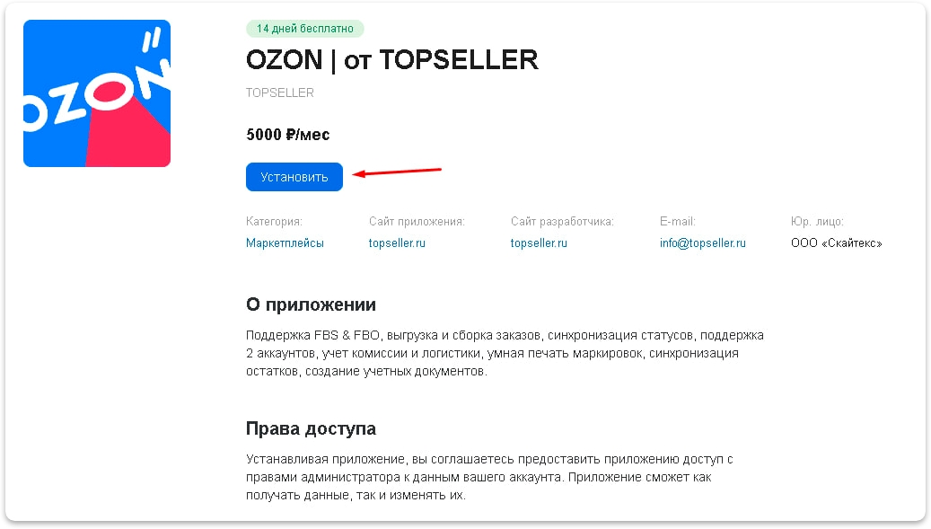 ПриложенияВ открывшимся списке найдите интеграцию с маркетплейсом от TOPSELLER
