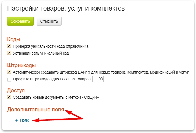 Откройте настройки дополнительных полей, для этого нажмите на кнопку с шестеренкой