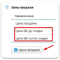 Добавьте цены. В открывшемся меню нажмите кнопку , создайте 2 вида цен: