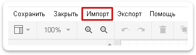 Слева вверху нажмите на кнопку Импорт, откроется меню импорта этикеток.