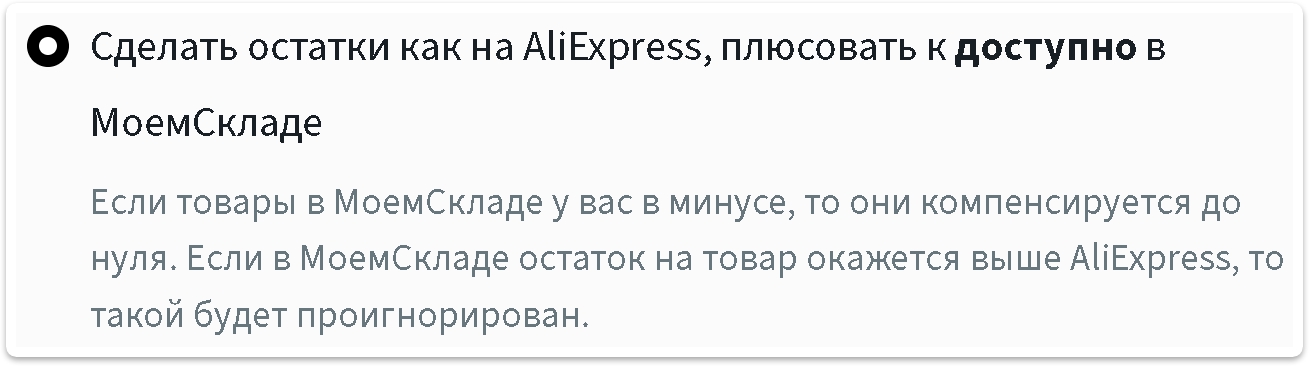 Эта функция не для сведения остатков. При первичной интеграции Вы можете перенести актуальные остатки с маркетплейса. Каким способом переносить остатки зависит от того переносите ли Вы историю заказов