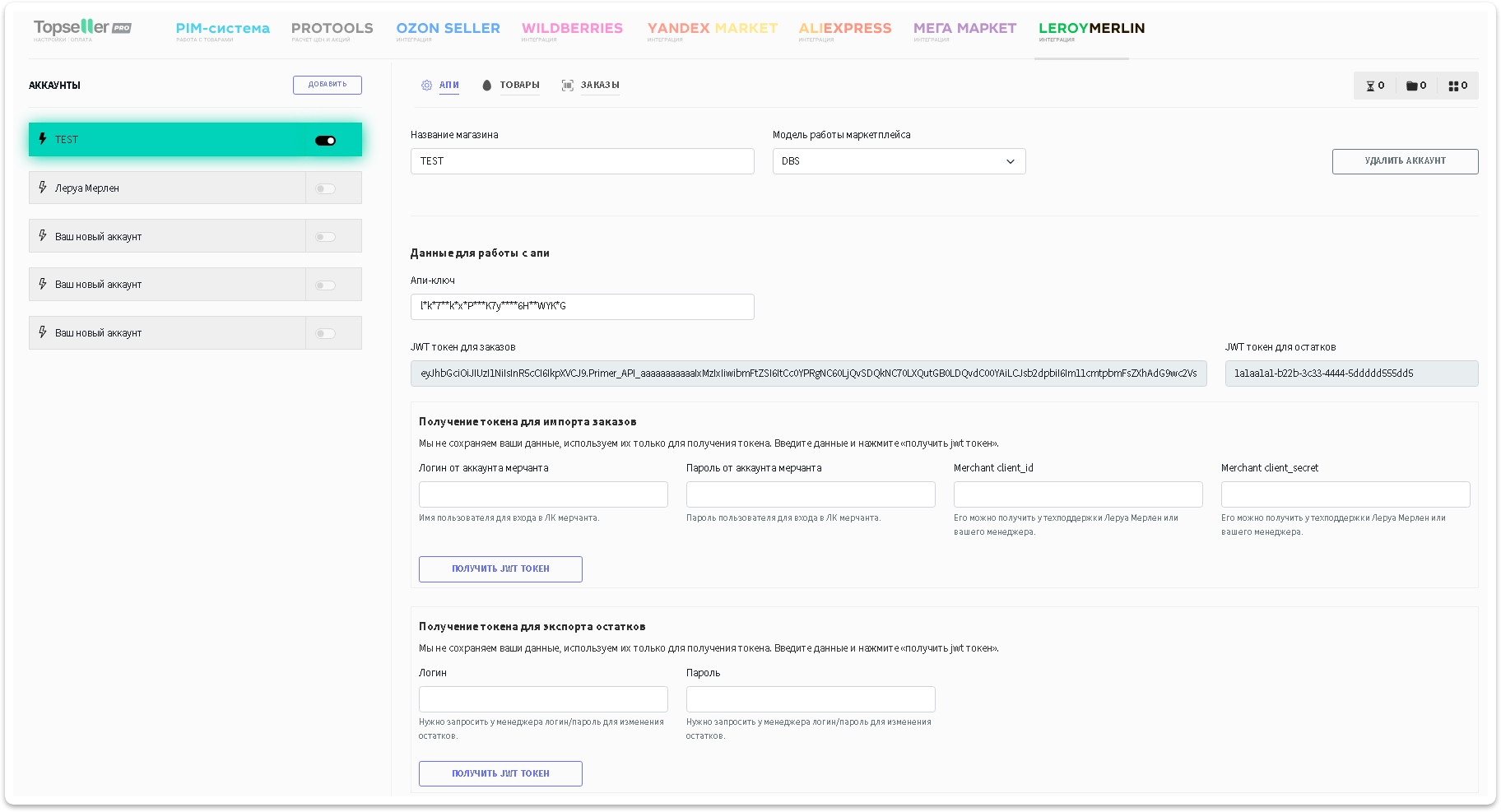 Получение токена для экспорта остатков. Далее, если вы хотите, чтобы работала синхронизация остатков и цен по АПИ Вам нужно запросить у менеджера или ТП Леруа: