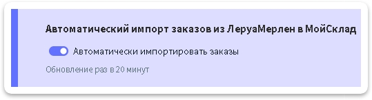 Для того, чтобы заказы автоматически синхронизировали статусы из Леруа в учетную систему включите эту функцию.
