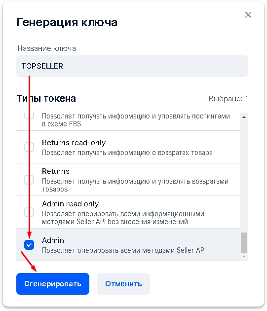 🧠Важно! Для корректной работы интеграции требуется полный доступ "Admin"