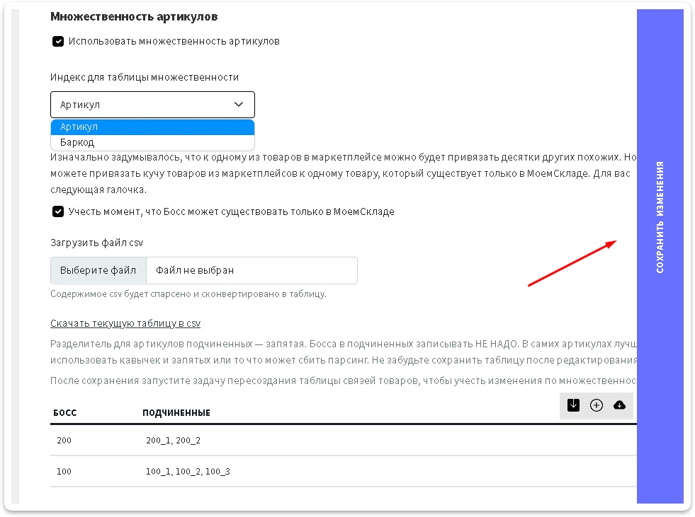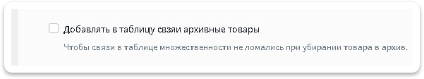 Если Вы используете таблицу множественности и вдруг случилось, что карточку босса заблокировали, то теперь не придется переделывать связи, достаточно включить эту галочку и архивные товары останутся в таблице связей