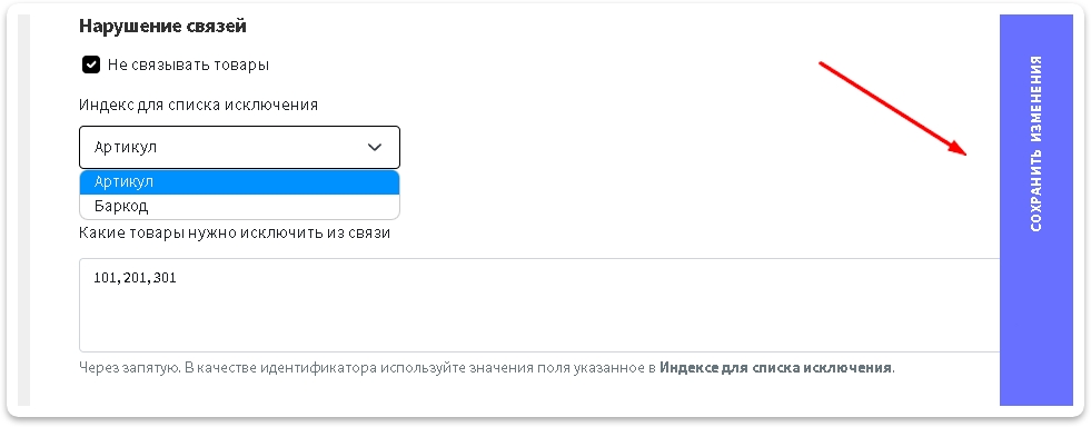 нужно прописать артикулы дублей. Они прописываются через запятуюПосле внесения всех данных нажмите на кнопку