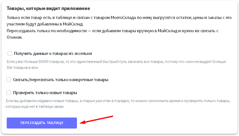 Бывает так, что таблица связей и ее обновление - длительный процесс. Например, если у вас миллион(ы) артикулов. Или для отслеживания используются не все товарные группы. В таком случае можно отказаться от использования таблицы связей: система будет искать и сопоставлять товары непосредственно по артикулу, или баркоду (считая их уникальными). Но мы рекомендуем таблицу связей все-таки включать, потому что это дает дополнительные функции.