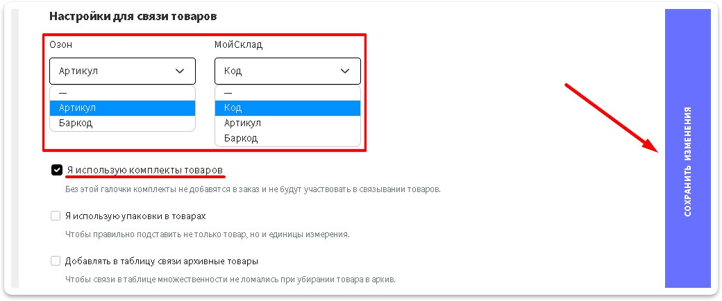 Связь товара определяет однозначное соответствие между товаром в маркетплейсе, и товаром, созданным в учетной системе. Чтобы в дальнейшем можно было отслеживать изменения в обоих системах уже автоматически.