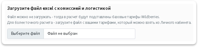 Загрузите файл EXCEL c комиссией и логистикой