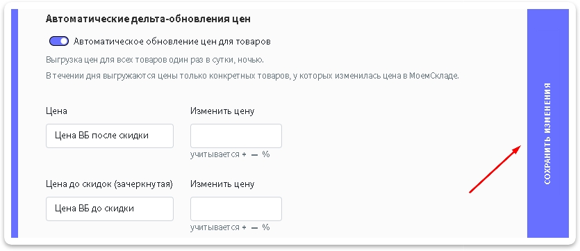 🧠 Важно! На данный момент цены выгружаются только один раз ночью, но скоро появится доработка функции и цены будут выгружаться по факту изменения цен в товарах в учетной системе.