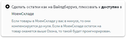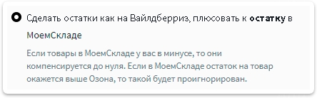 Эта функция не для сведения остатков. При первичной интеграции Вы можете перенести актуальные остатки с маркетплейса. Каким способом переносить остатки зависит от того переносите ли Вы историю заказов