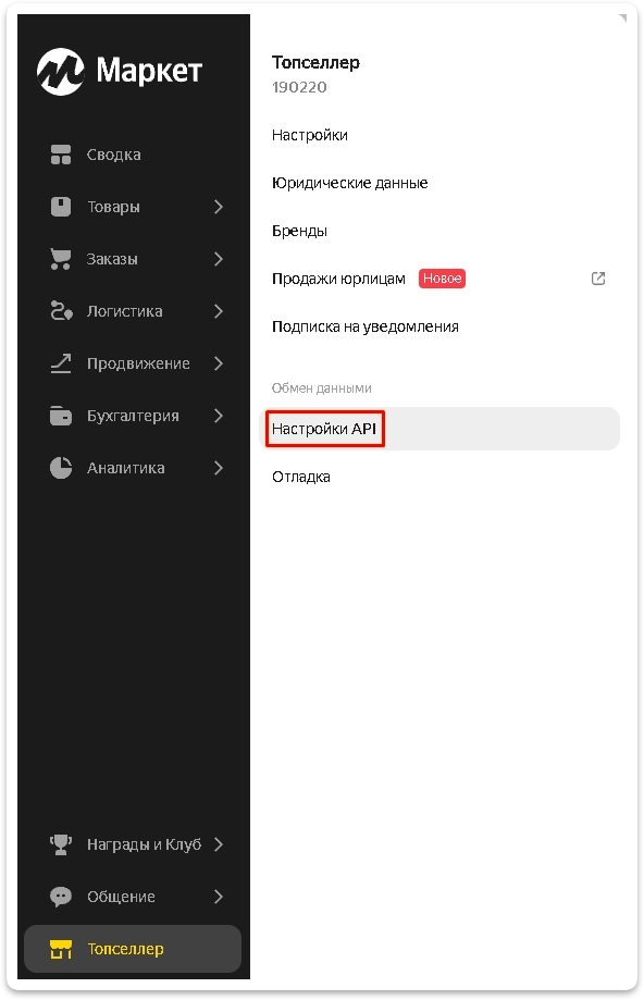Чтобы появился следующий пункт меню, нужно нажать Подключить у заголовка Подключение запросов от Маркета