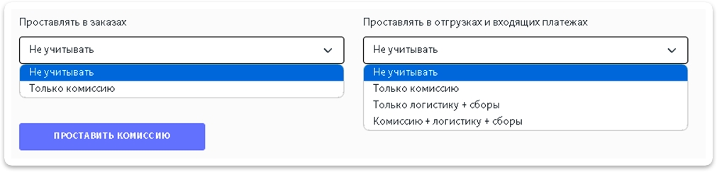 Комиссию и логистику + сборыЕсли вы хотите, чтобы логистика и сборы НЕ записывались в накладные расходы в документе отгрузки, то поставьте галочку
