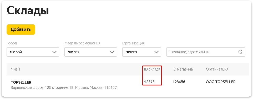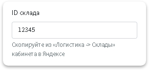 Айди склада находится в Личном кабинете в меню Логистика в разделе Склады