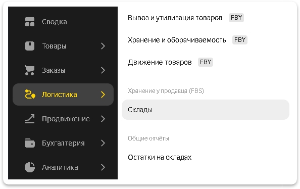 Одна из ключевых функций при работе по схеме продажи со своего склада. Вы можете просто вносить остатки в учетную систему и автоматически экспортировать их в Яндекс.