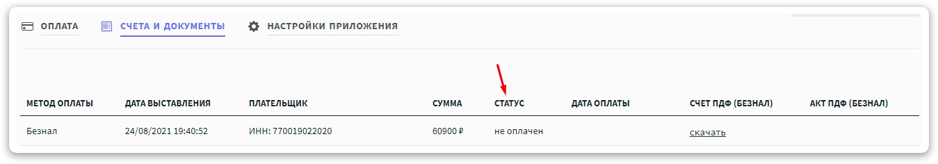 СЧЕТА И ДОКУМЕНТЫ. Статус оплаты проверяется раз в 60 минут. После успешного зачисления средств подписка будет автоматически продлена. Также в этом разделе хранятся все ваши транзакции, а также есть возможность скачать сканы закрывающих документов (АКТЫ).